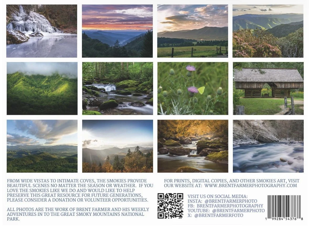 Categories: All Prints Cades Cove Mountain Views Mushrooms and other Fungi Sunrises and Sunsets Trails Waterfalls, Creeks, and Streams Wildflowers Wildlife Japan Digital Print Downloads Cades Cove Mountain Views Mushrooms and Other Fungi Sunrises and Sunsets Trails Waterfalls, Creeks, and Streams Wildflowers Wildlife Japan Books, Calendars, Stickers and More Gift Cards Shop All | Prints | Digital Print Downloads | Books, Calendars, Stickers and More | Gift Cards | 2026 Great Smoky Mountains National Park Wall Calendar $12.99 Smoky Mountain Greeting Cards from $5.00 Wild Bergamot blooms in Cades Cove at sunrise from $25.00 Gift Card from $10.00 Sunrise from Mills Overlook from 441 from $25.00 Sunrise along 441 at Mills Overlook- digital download, commercial license $65.00 Sunrise along 441 at Mills Overlook- digital download, personal license $35.00